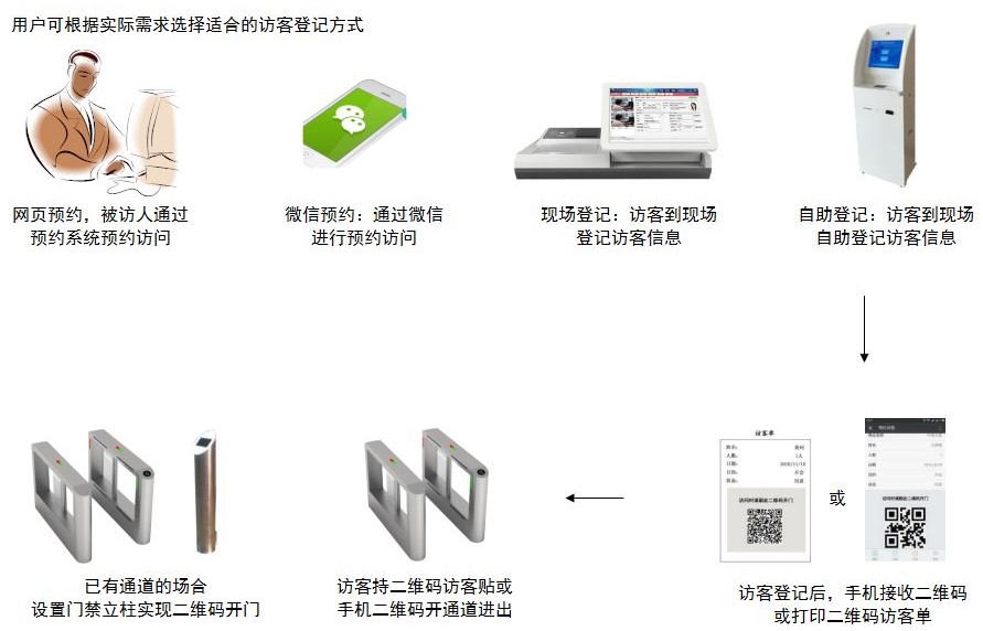 人员通过在速通门的感应区扫描二维码即可开启进入,用户不再需要提供临时门禁卡,节省了制卡的成本。
